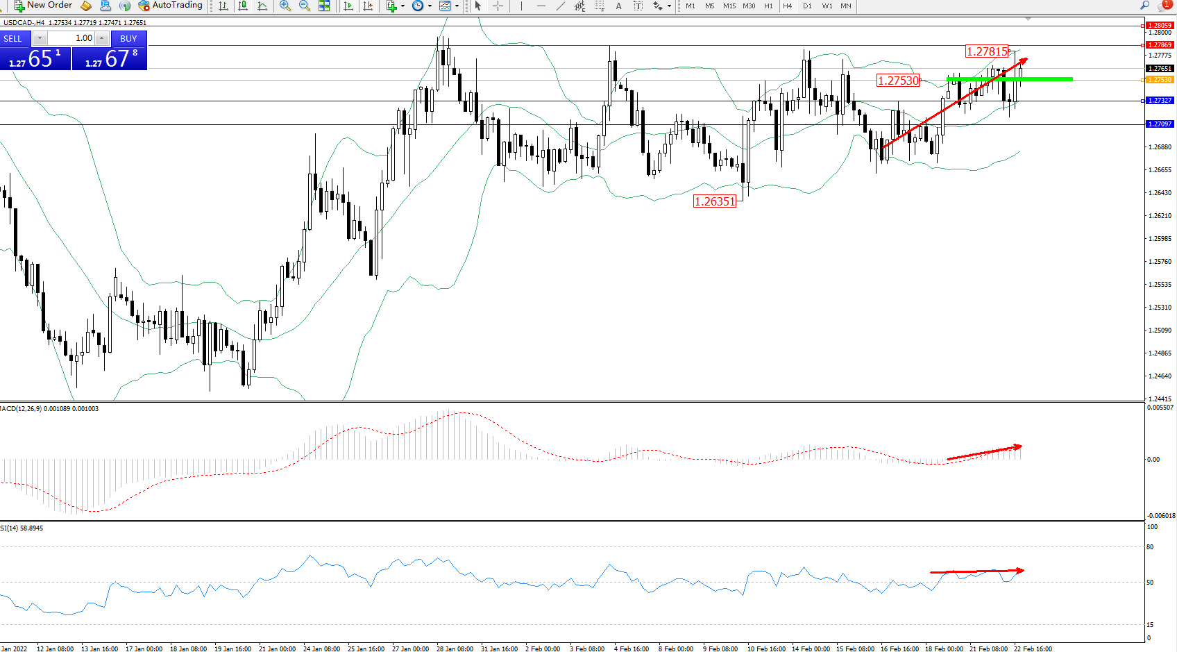 美元加元USDCAD——4小时K线图显示: