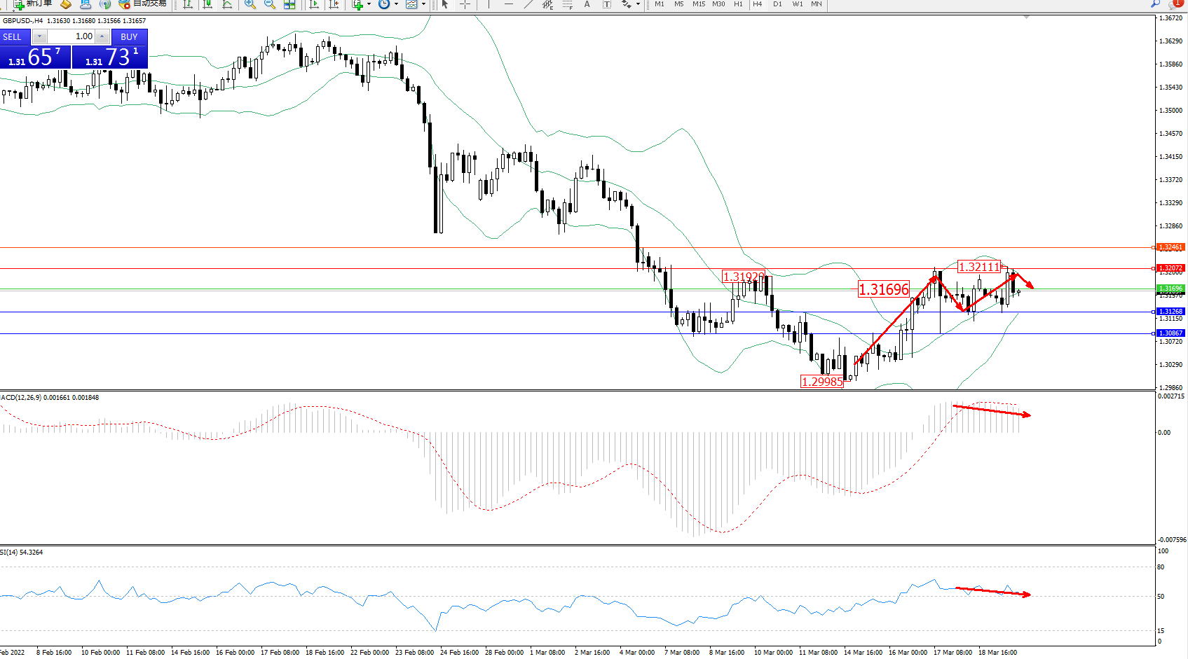 交易策略:1.31696下方看跌,目标1.31268、1.30867