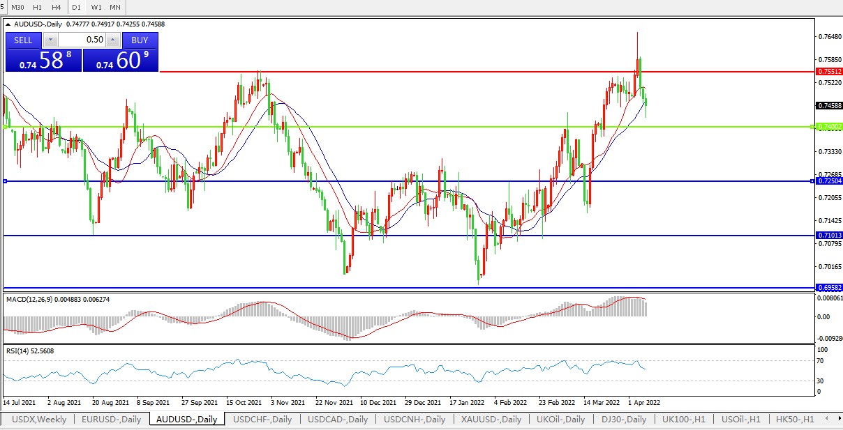 交易策略:0.7400上方看涨,目标0.7550、0.7650