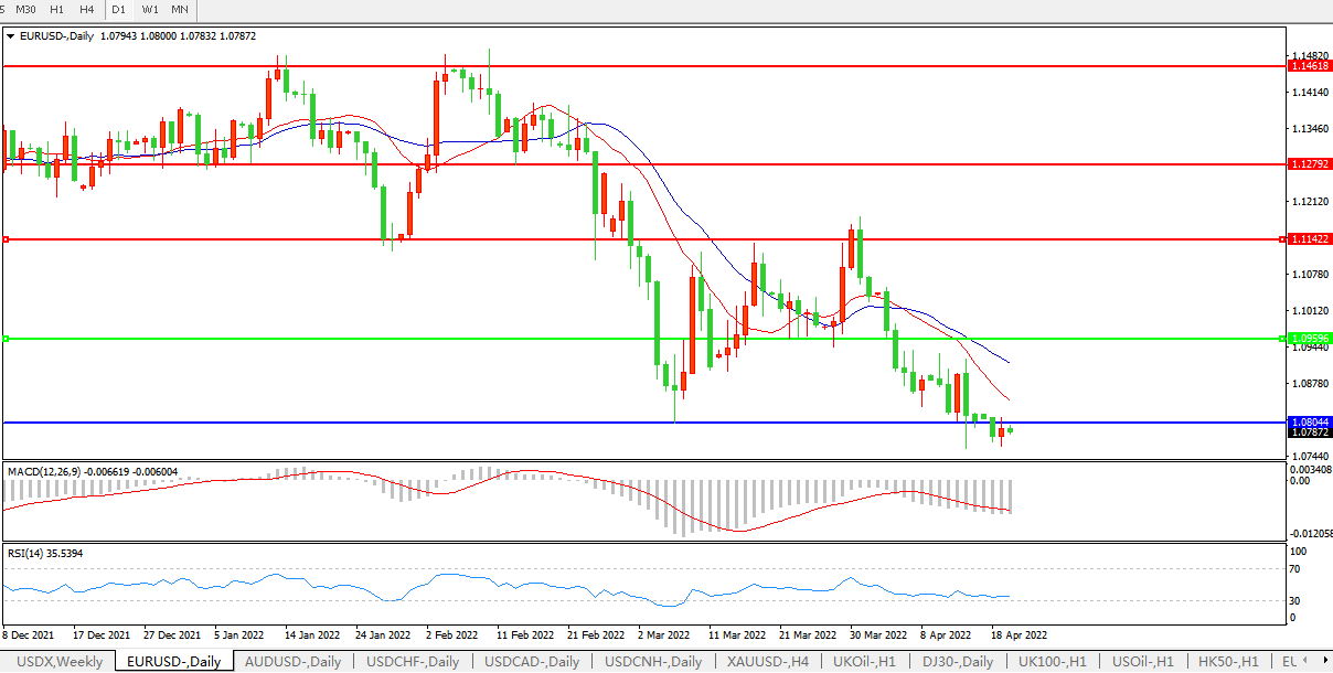 由于欧洲央行和美联储之间的政策差异,法国总统选举的不确定性以及俄乌冲突,欧元兑美元EUR/USD本周可能下跌。分析师表示,欧洲央行上周四政策会议的一个重要结论是,美联储和欧洲央行将在更长时间内维持较大的政策缺口。与此同时,法国第二轮选举将于4月24日举行,且乌克兰危机引发的担忧日益增加。这些因素不利于欧元复苏,欧元兑美元可能在未来几天下测测试1.0700。