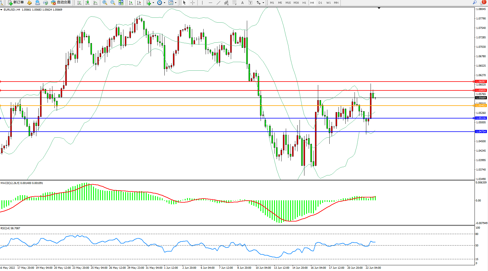欧元美元EURUSD—4小时K线图显示: