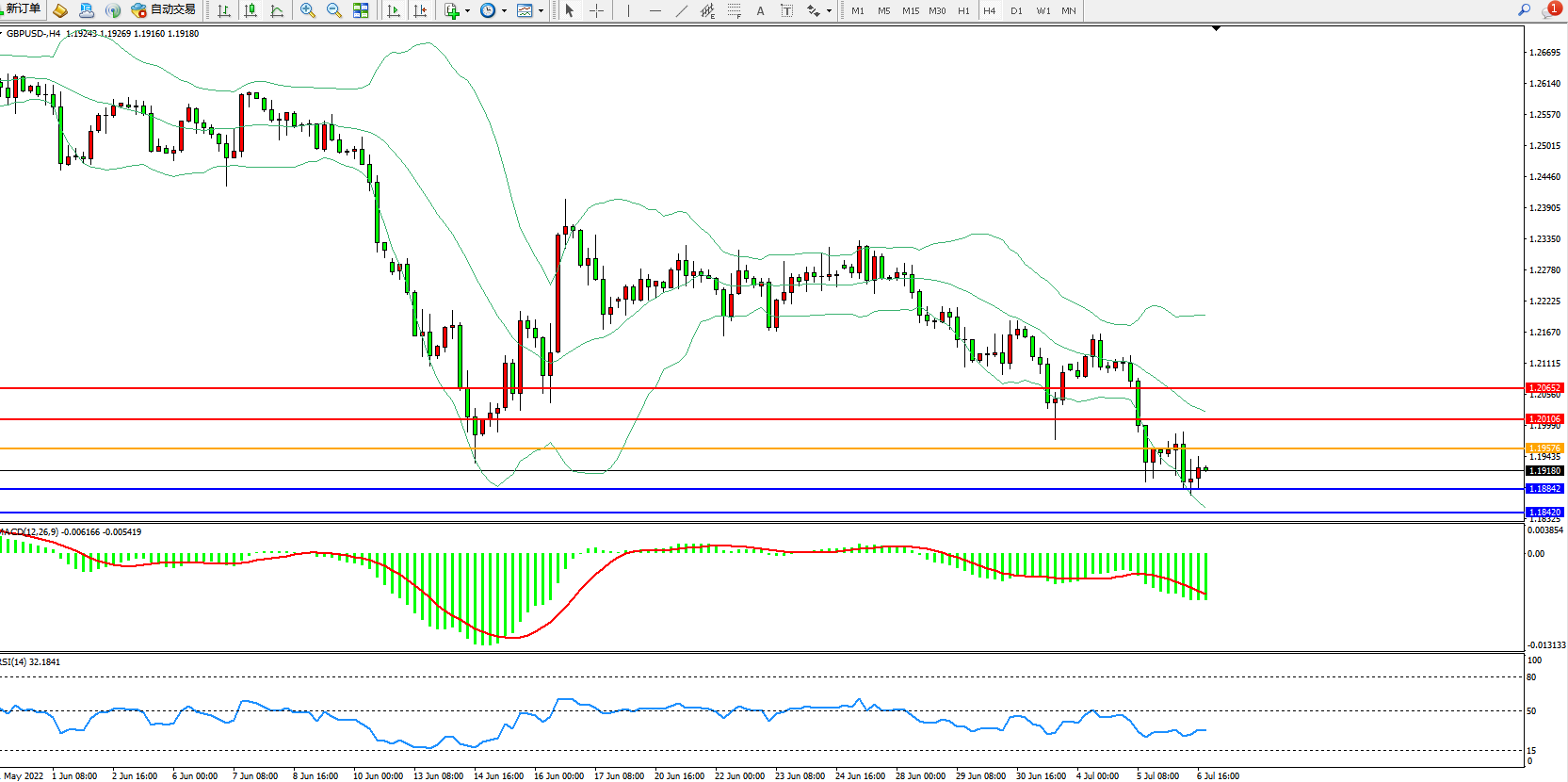 交易策略:1.19576下方看跌,目标1.18842、1.18420