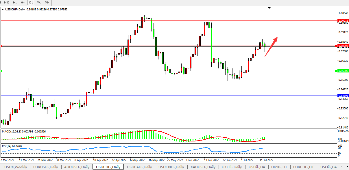 交易策略:0.9600上方看涨,目标0.9800,1.0000