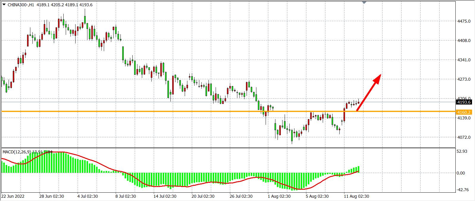 1小时图看,沪深300维持在4160之上,同时MACD于零轴之上量能持续放大,显示短期多头动能依旧强劲,支撑4160有效,在该位之上看反弹4250-4300