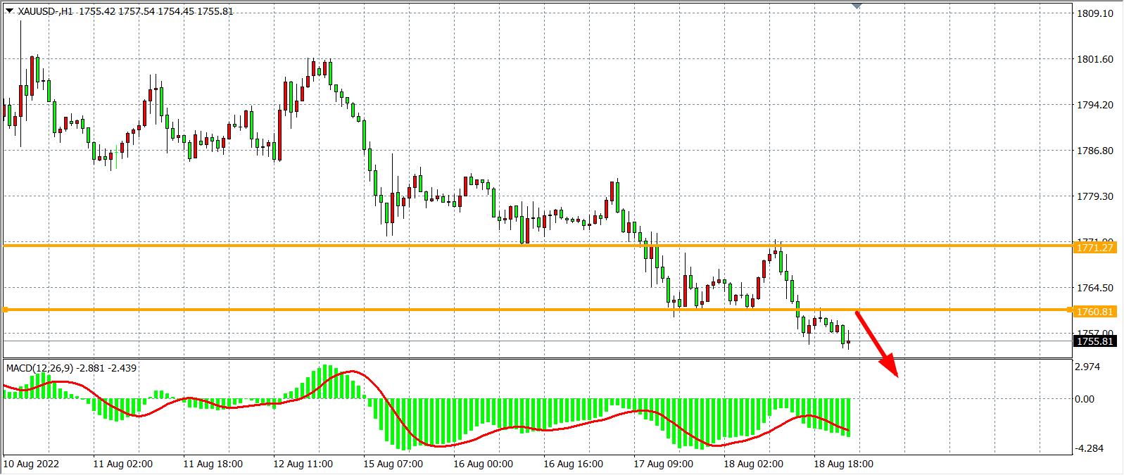 美联储多位官员继续放鹰,同时美国初请失业金人数三周以来首次下降,美指上破107大关,现货黄金于1772美元受阻后冲高回落,下破1760美元