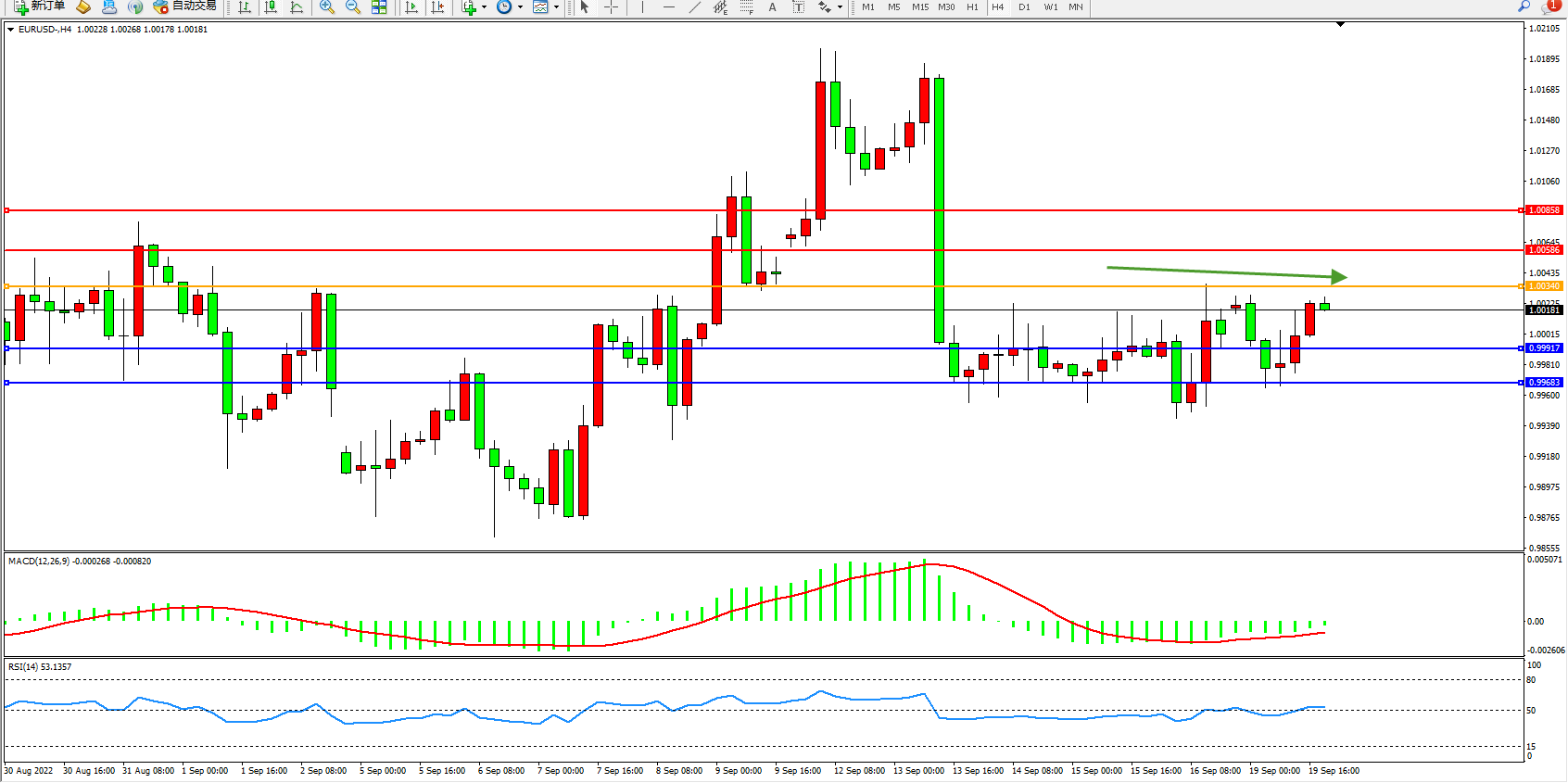备选策略:1.00340上方看涨,目标1.00586、1.00858
