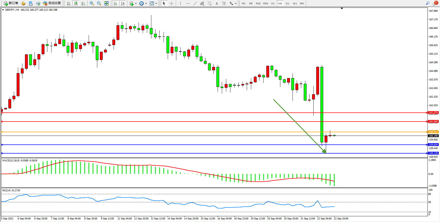 备选策略:160.417上方看涨,目标161.040、161.570