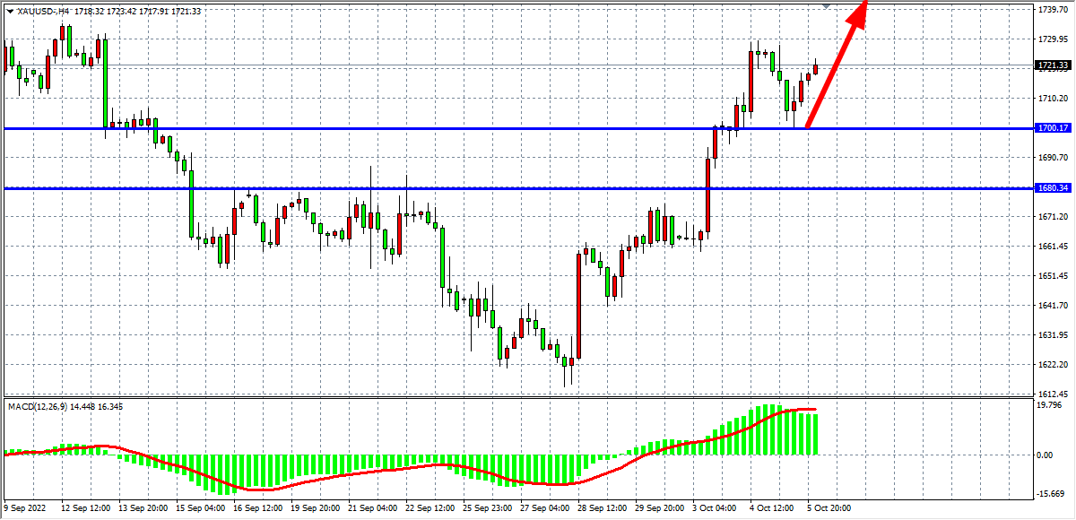 周三(10月5日)“小非农”美国9月ADP就业人数录得增加20.8万人,略好于预期的20万人,表明美国劳动力需求保持健康,加强了对于即将公布非农数据起到加持作用,同时加大了美联储持续暴力加息的可能性。美指大涨近1%,重返111上方,现货黄金承压一度下逼1700关口,最终收跌0.56%。