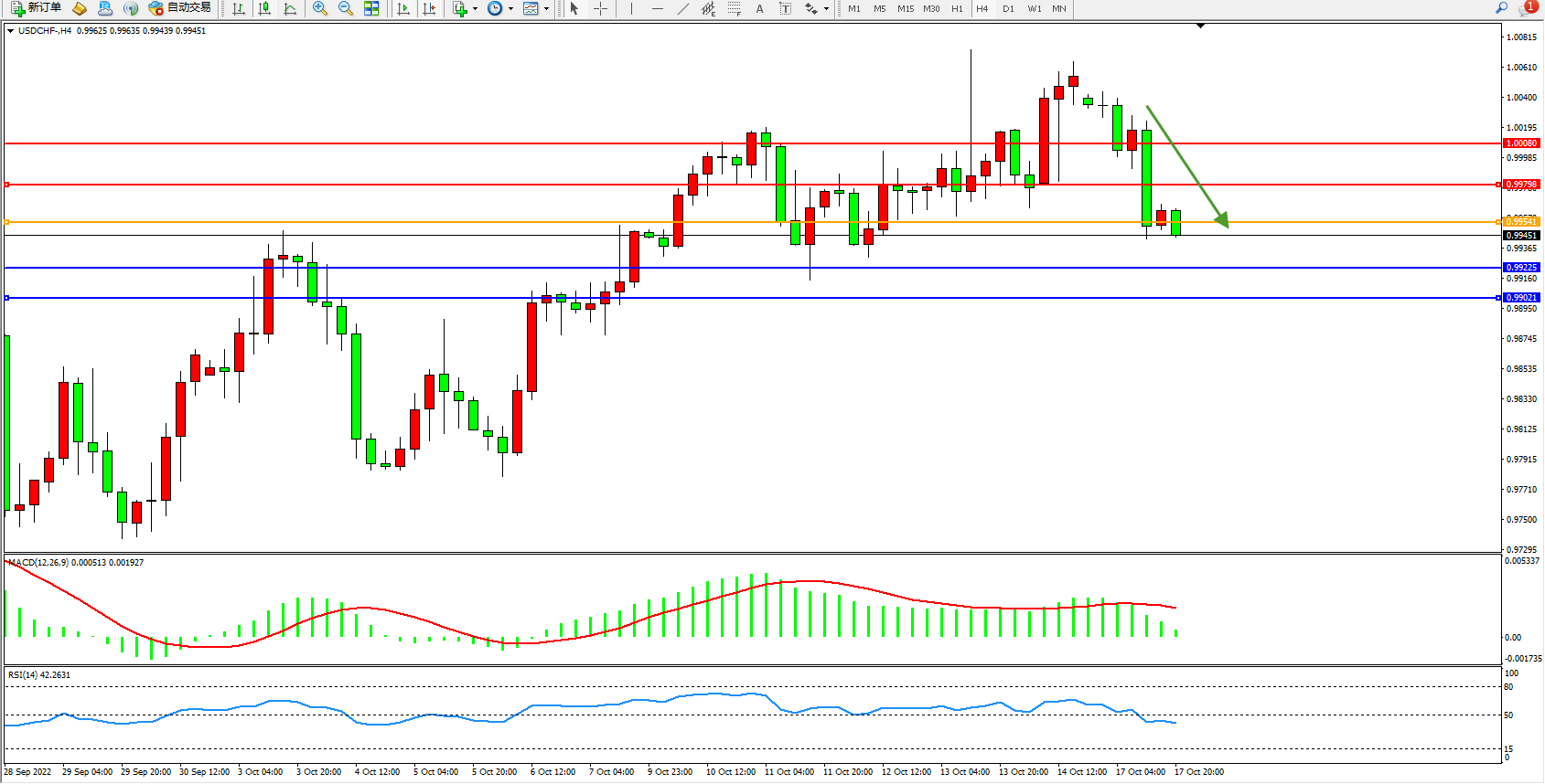美元瑞郎USDCHF——4小时K线图显示: