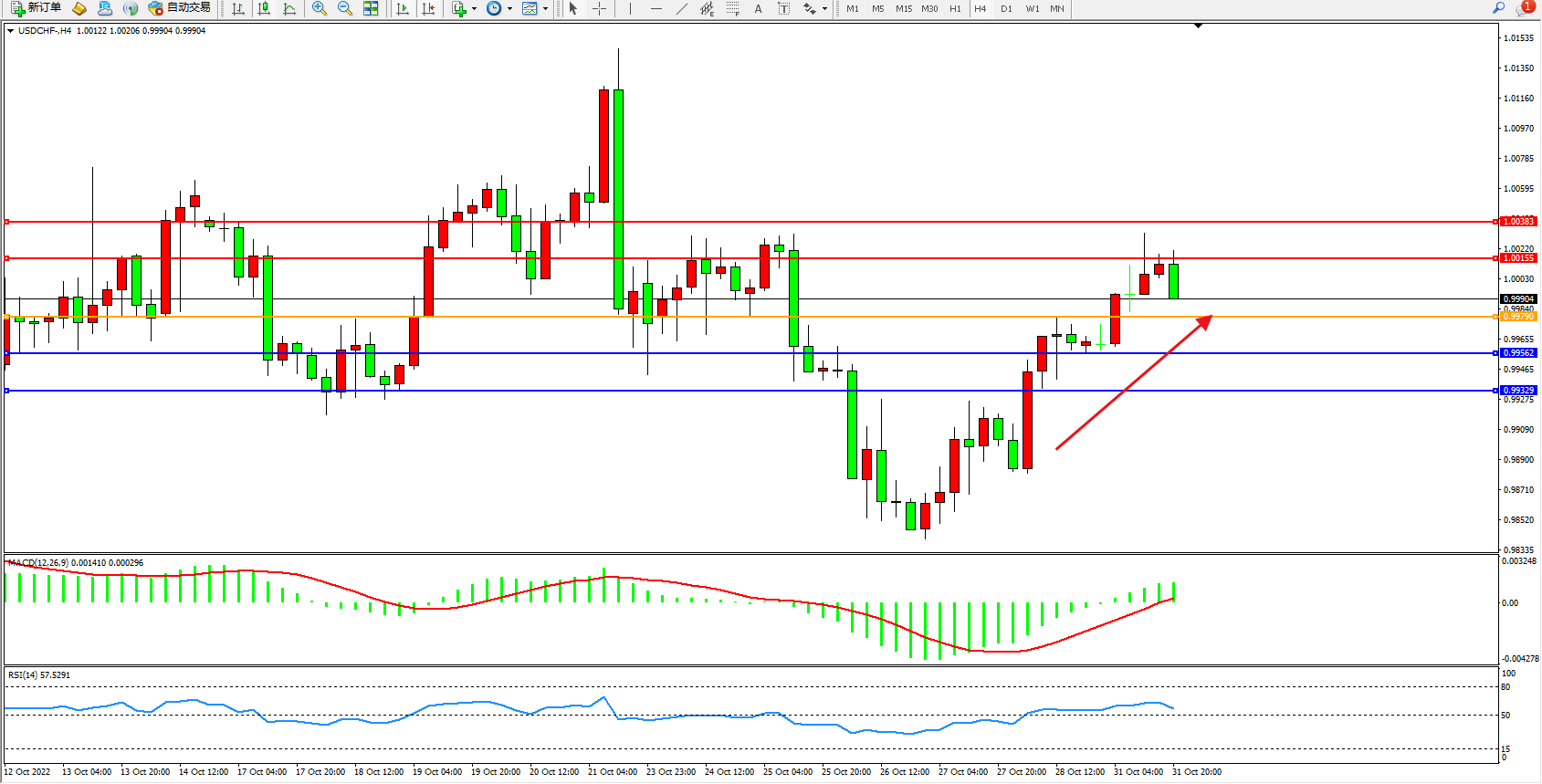 美元瑞郎USDCHF——4小时K线图显示: