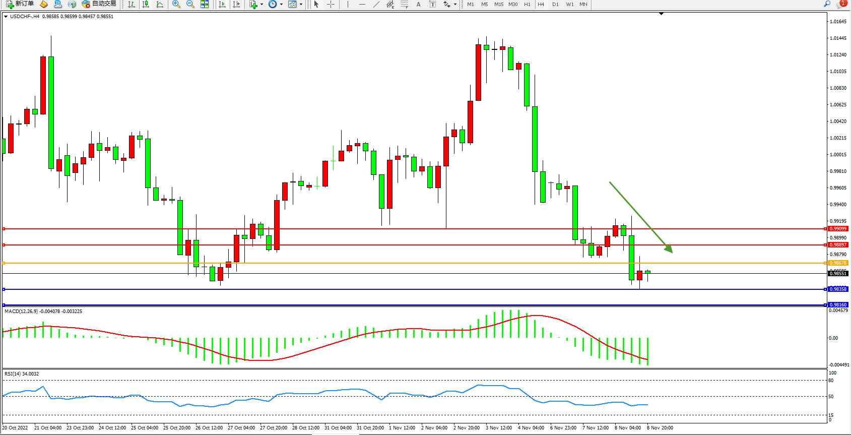 美元瑞郎USDCHF——4小时K线图显示: