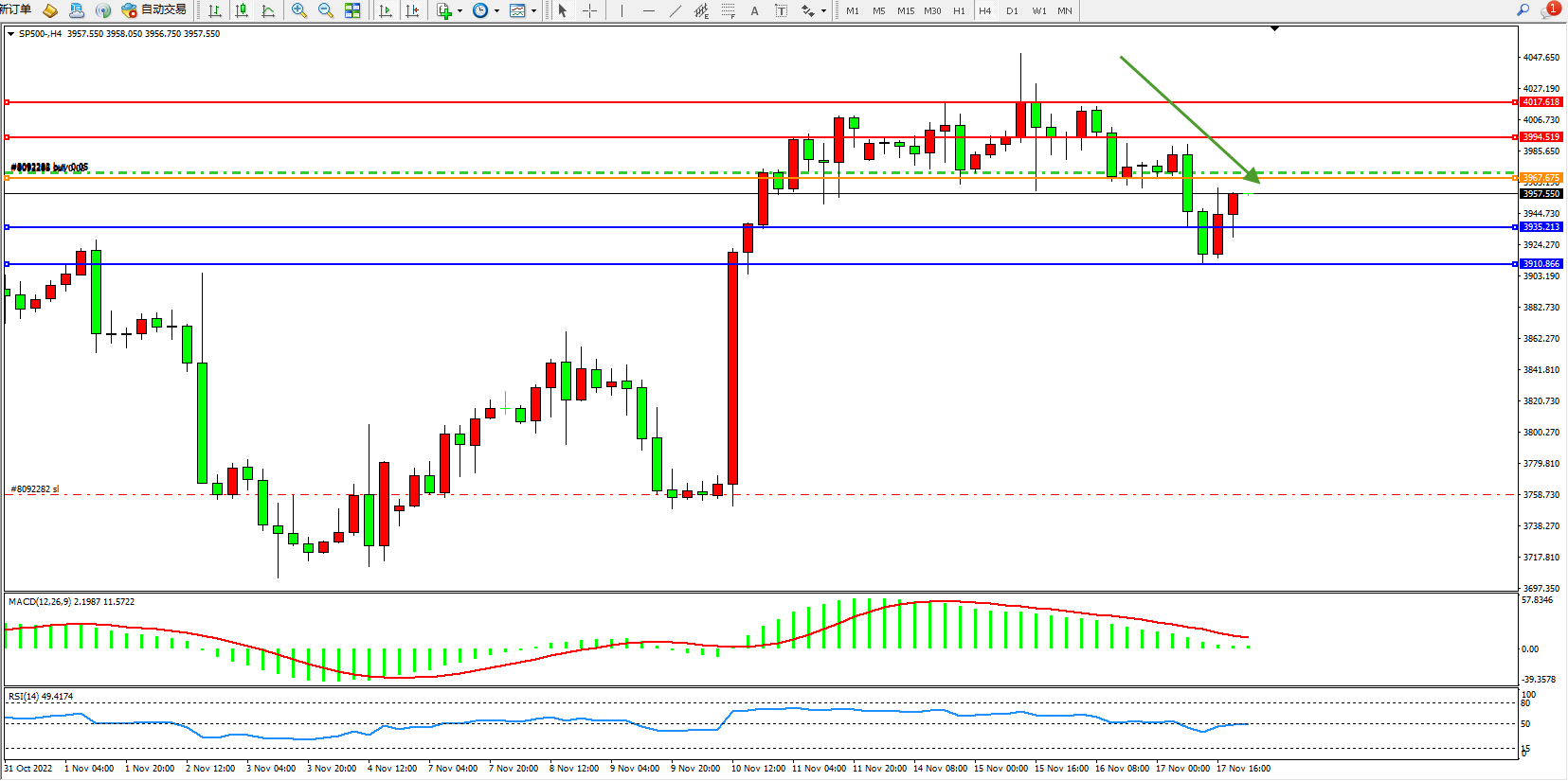 标普SP500——4小时K线图显示: