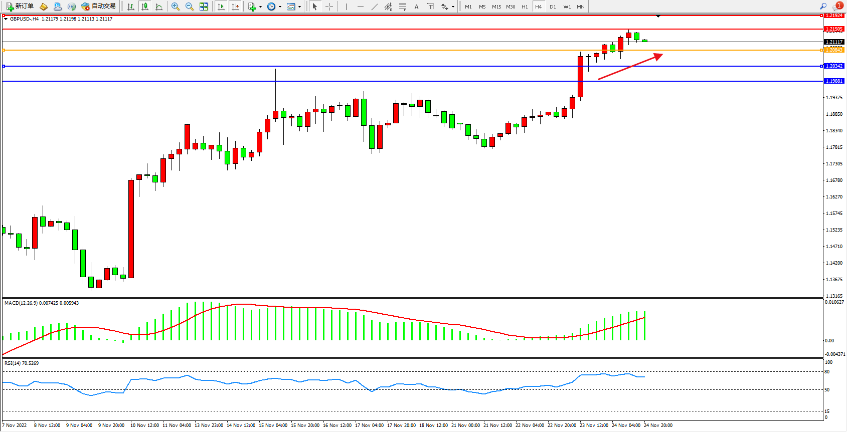 英镑美元GBPUSD ——4小时K线图显示: