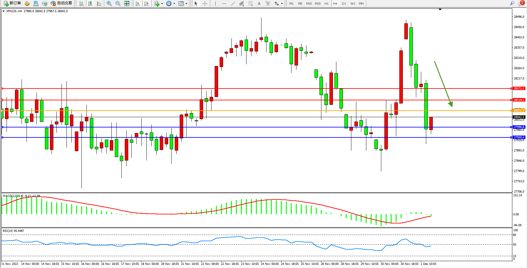 日经225指数12月1日(周四)收盘上涨270.51点,涨幅0.97%,报28239.50点。日本央行委员野口旭:日本公众认为物价不会大幅上涨的看法已经开始发生变化。工资必须上涨3%左右,才能达到日本央行2%的通胀目标。现在很难说,如果日本央行退出宽松政策,它将以什么顺序调整货币工具。
