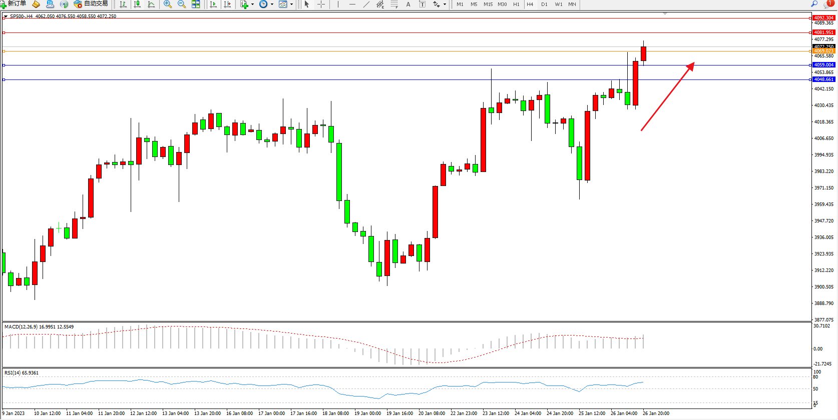 标普SP500——4小时K线图显示: