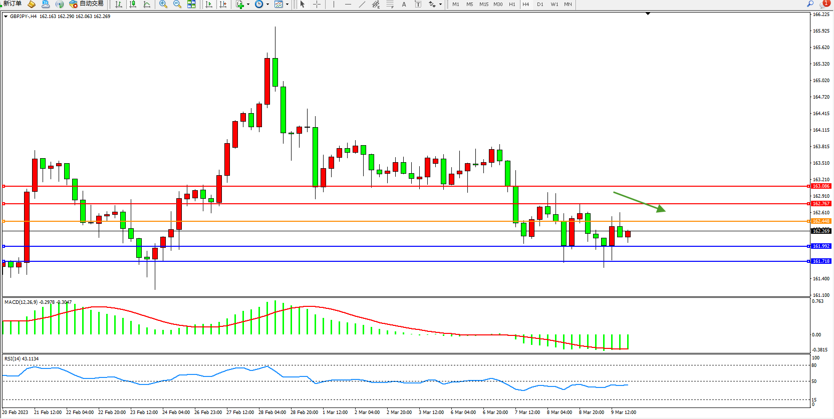交易策略:162.448下方看跌,目标161.992  161.718
