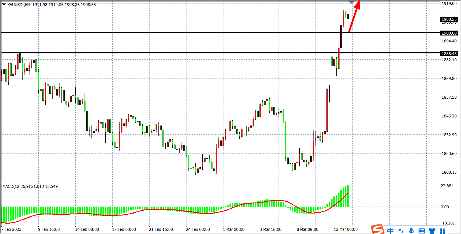 现货黄金XAUUSD 4小时图