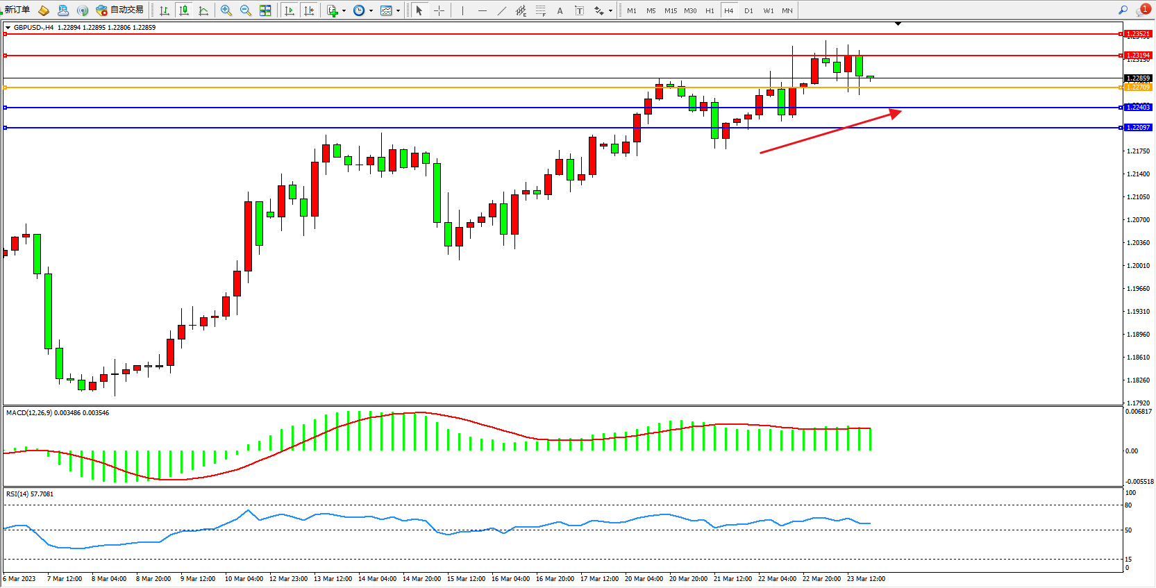 交易策略:1.22709上方看涨,目标1.23194 1.23521
