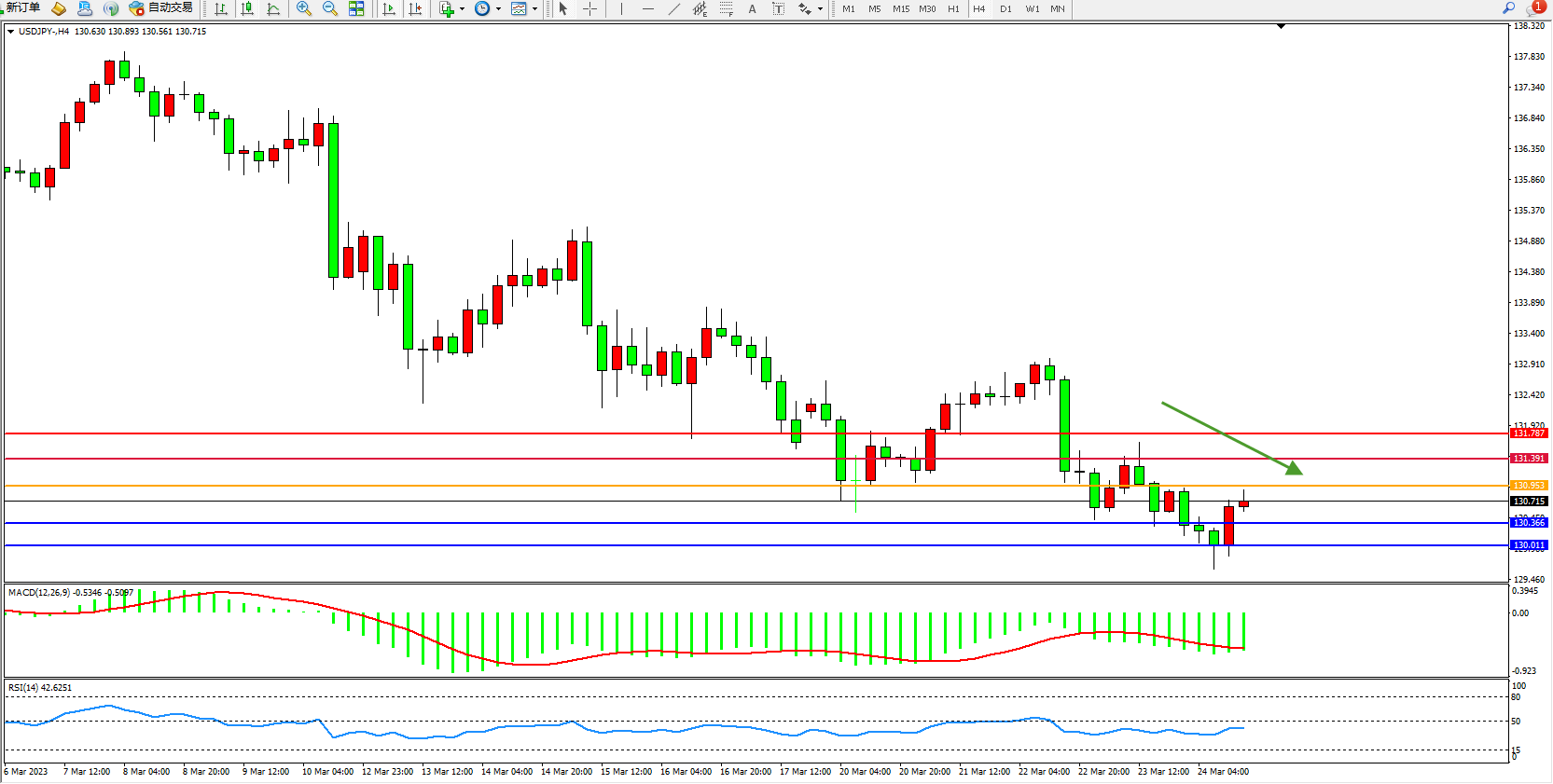 交易策略:130.953下方看跌,目标130.366  130.011