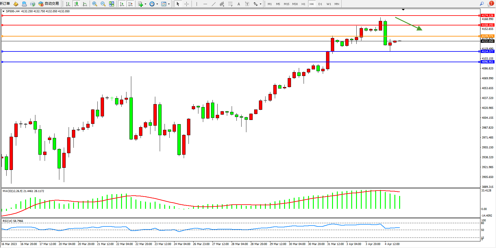标普SP500——4小时K线图显示: