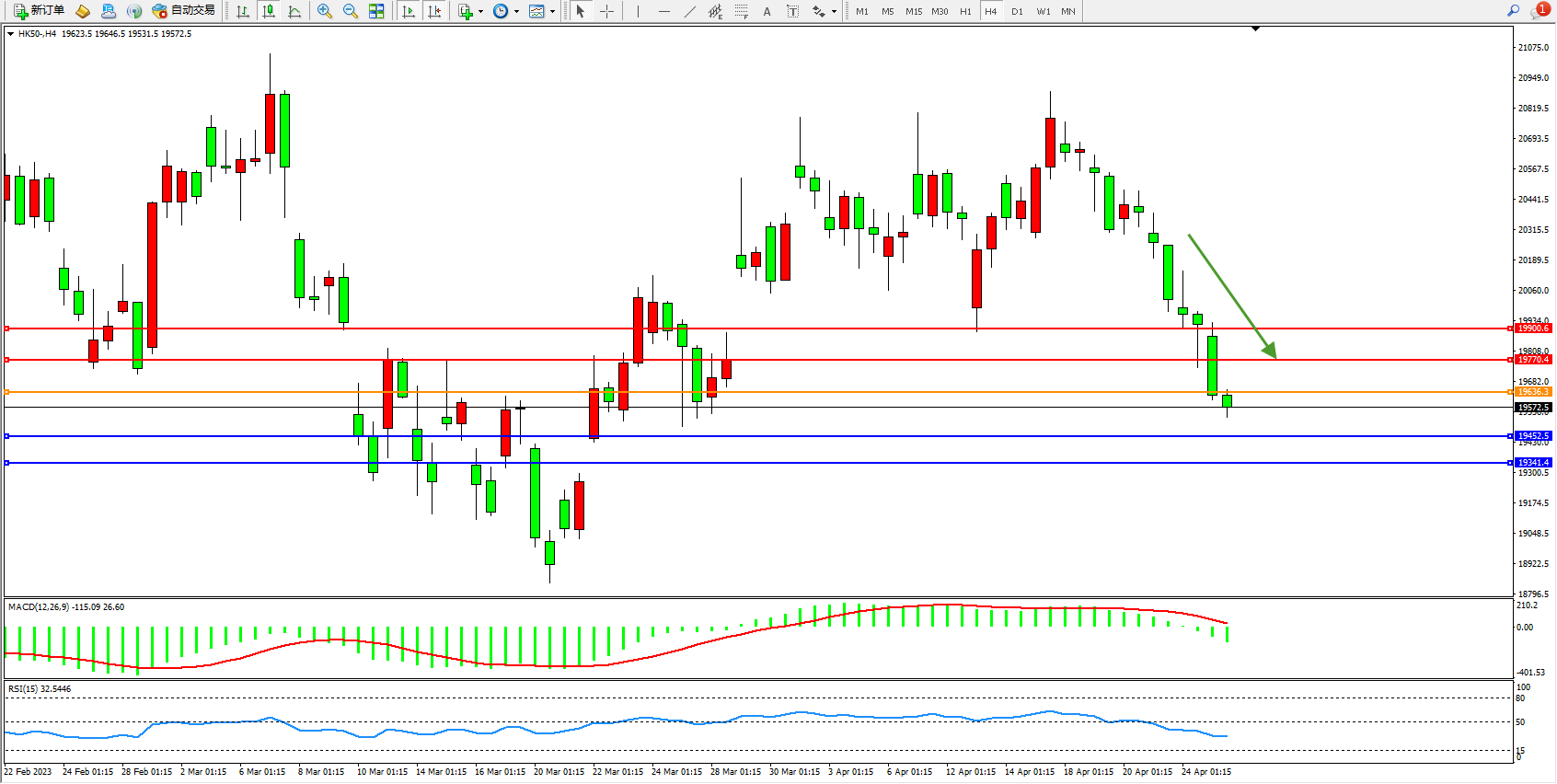 恒指HK50 4小时图