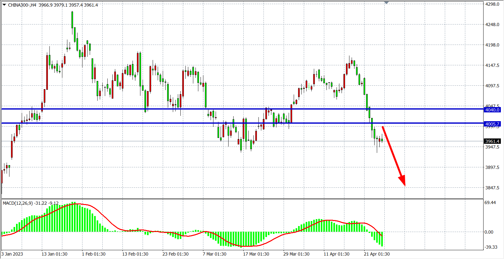 交易策略:4005 下方看跌,目标 3950  3900