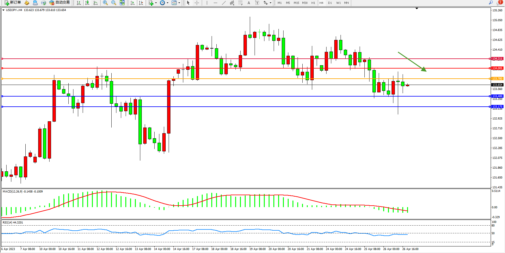 支撑位:133.400 133.175