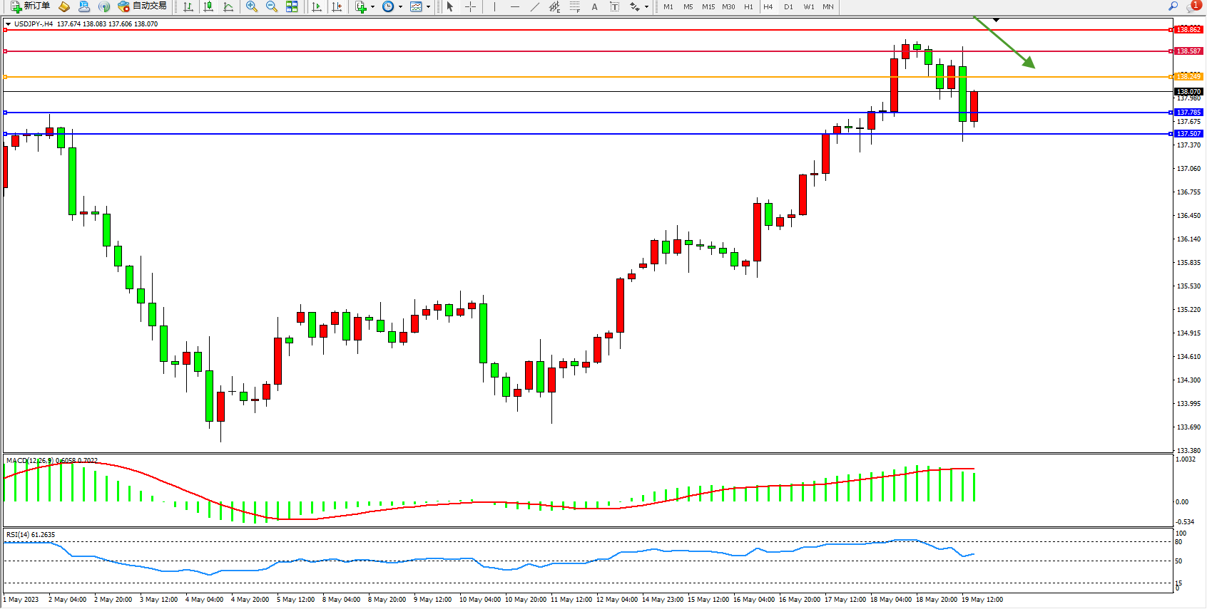 交易策略:138.249下方看跌,目标137.785  137.507