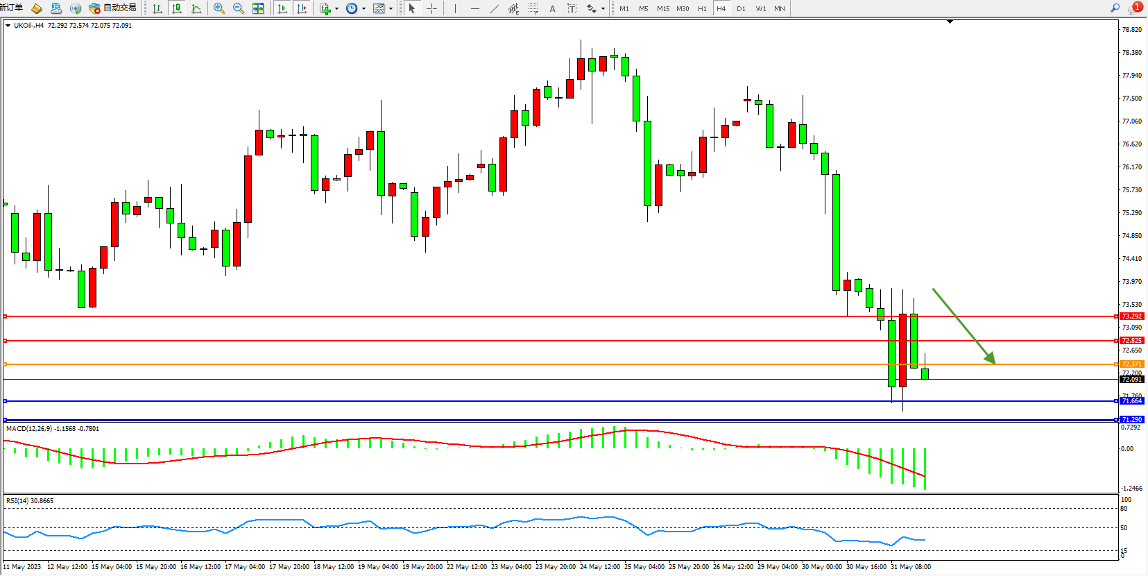 布油维持72.091附近震荡,美国避免债务违约的截止日期(6月5日)几乎与石油输出国组织和包括俄罗斯在内的盟国(OPEC+)的会议日期(6月4日)重合。市场参与者对该集团是否会进一步加码减产持不同看法。