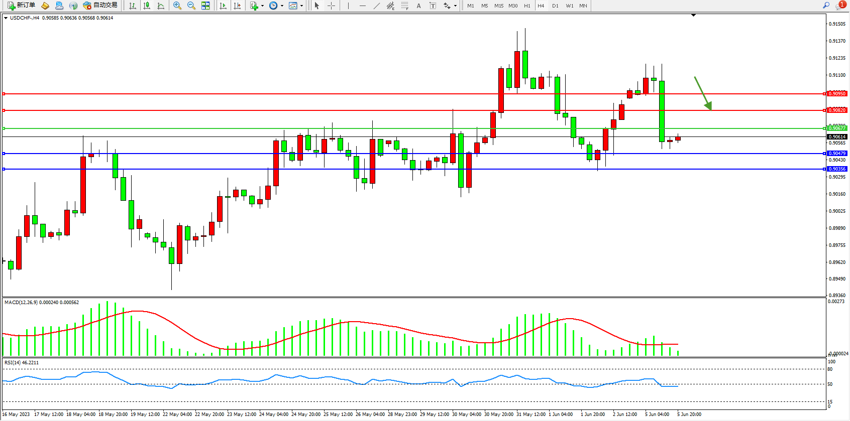美元瑞郎USDCHF——4小时K线图显示: