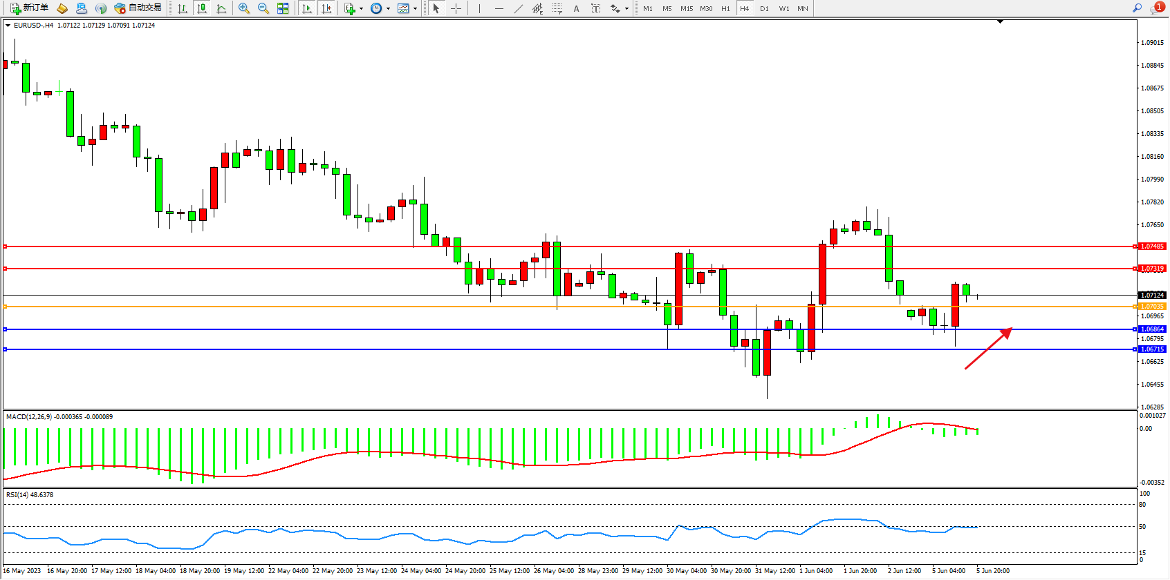 支撑位:1.06864 1.06715
