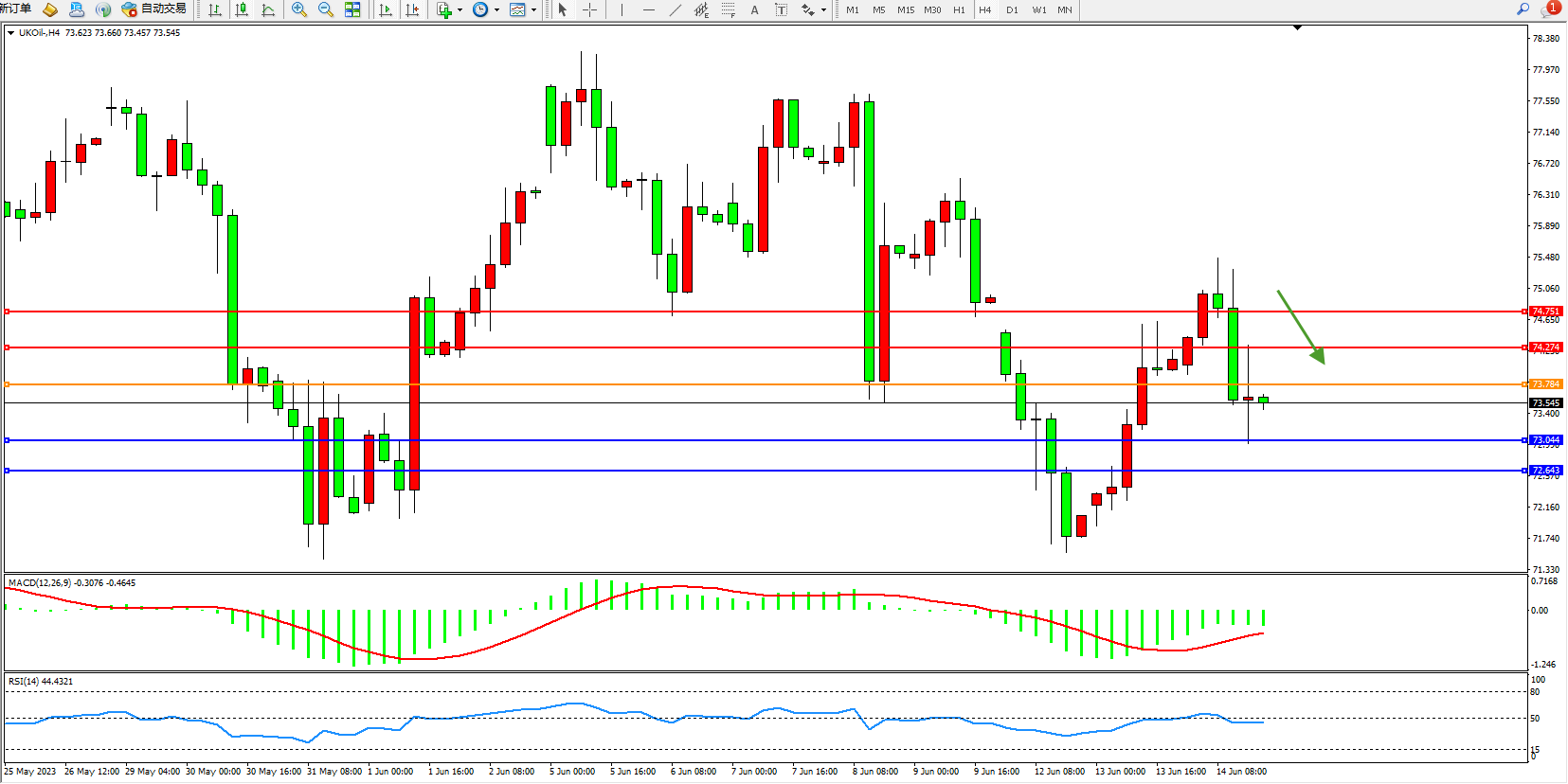 布油UKOil——4小时K线图显示: