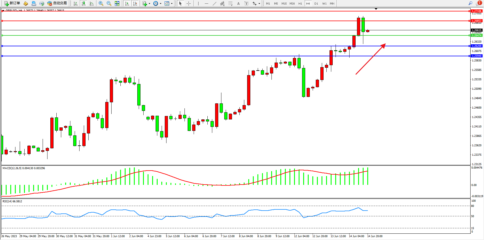 英镑美元GBPUSD ——4小时K线图显示: