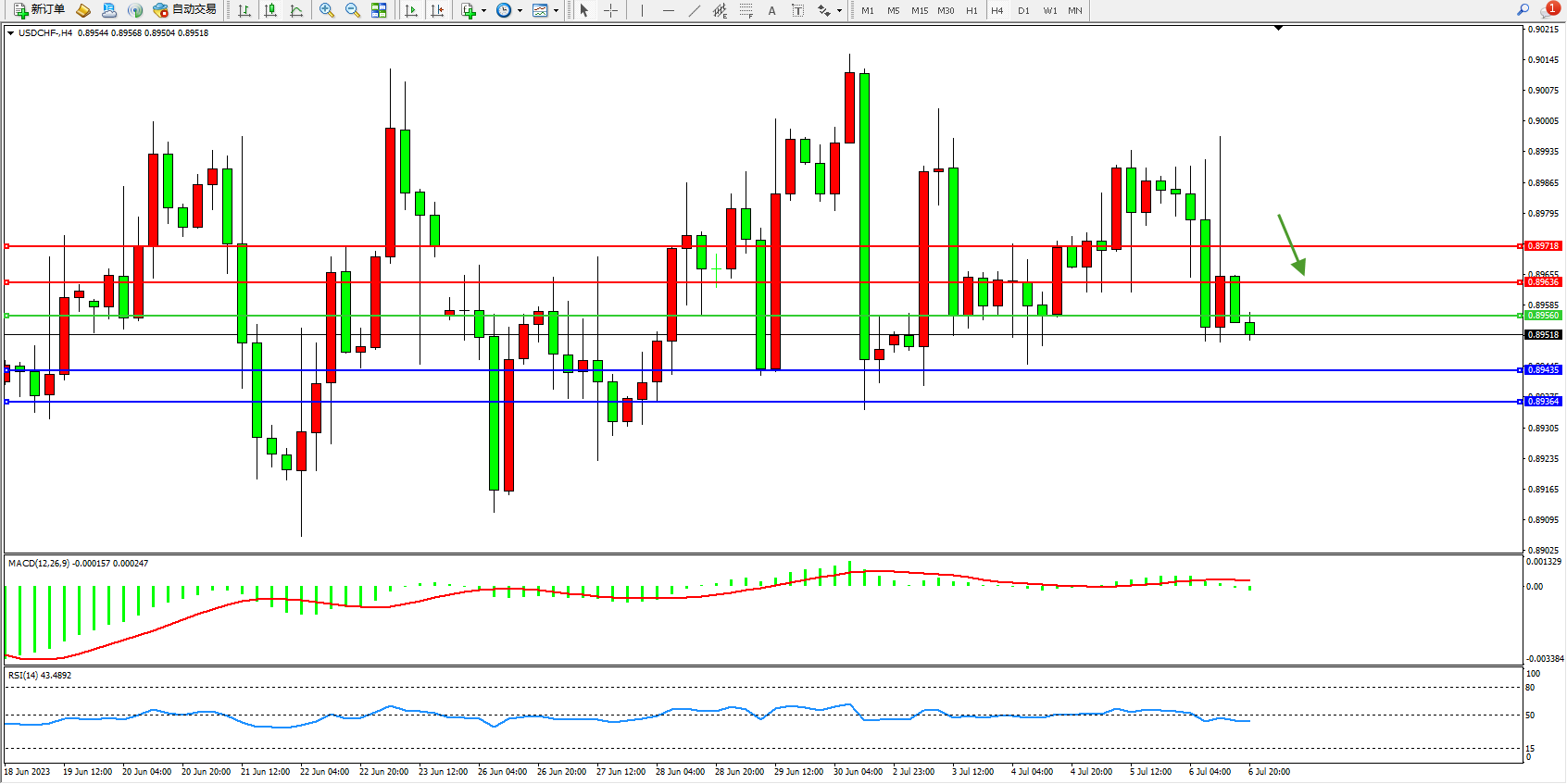 美元瑞郎USDCHF——4小时K线图显示: