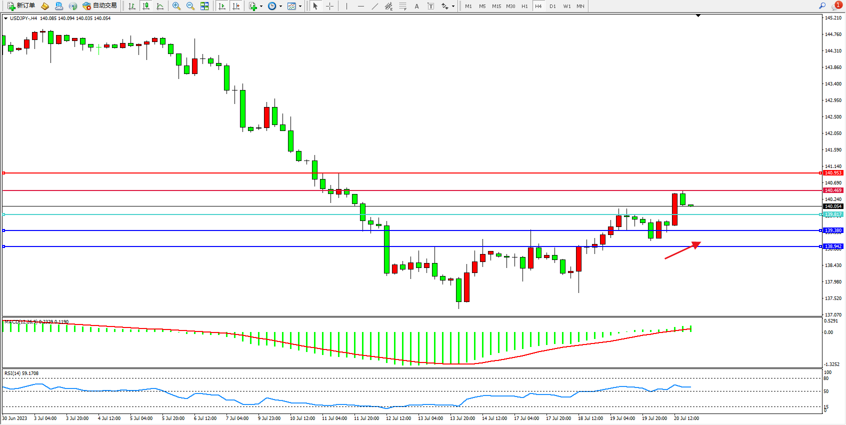 阻力位:140.469 140.953