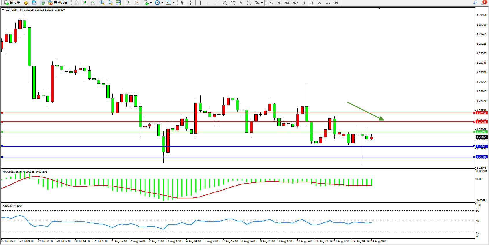 英镑美元GBPUSD ——4小时K线图显示: