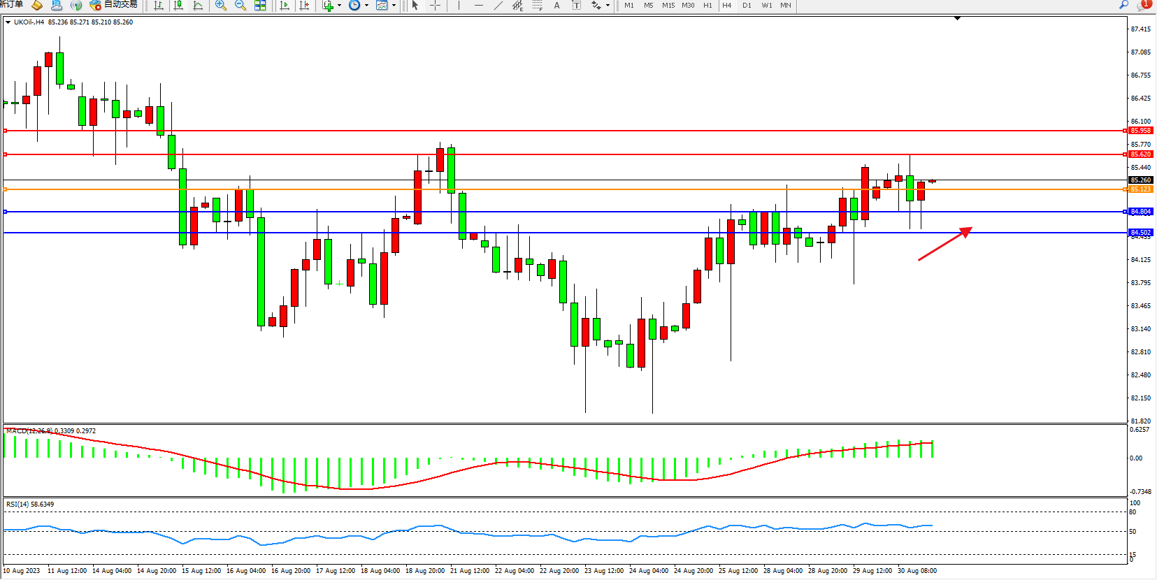 布油UKOil——4小时K线图显示: