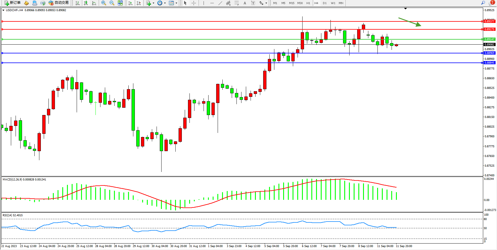 交易策略:0.89147下方看跌,目标0.88969 0.88845