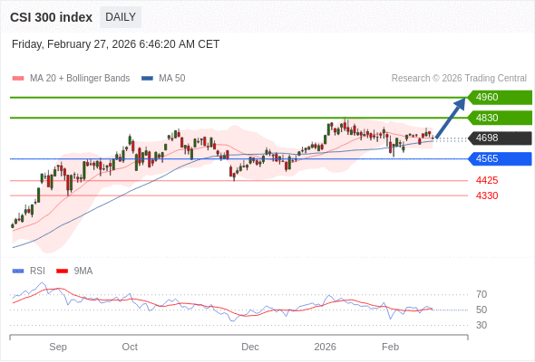沪深300指数 短线: 在4565之上,看涨。
