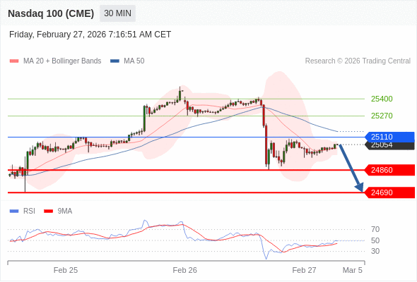 在 25110 之下,看跌,目标价位为 24860 ,然后为 24690 。