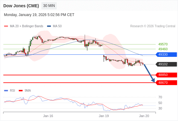 在 49330 之下,看跌,目标价位为 48850 ,然后为 48670 。