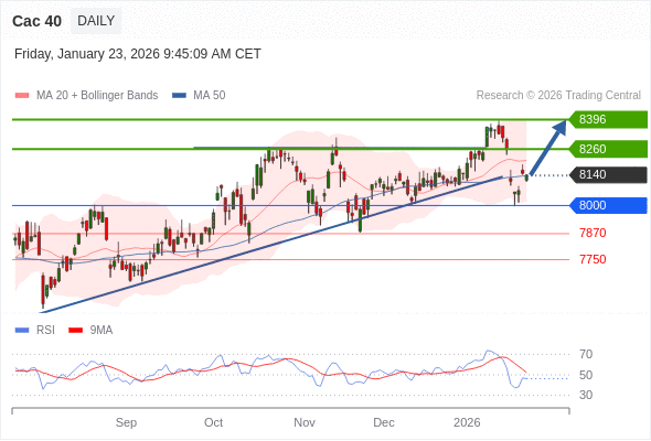 Cac 40 短线: 在8000之上,看涨。