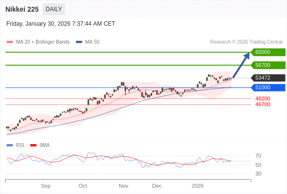 Nikkei 225 短线: 目标位为56700。