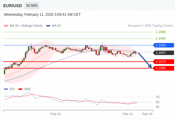 交易策略: 在 1.1920 之下,看跌,目标价位为 1.1870 ,然后为 1.1850 。