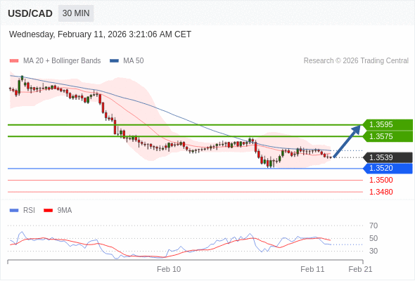 在 1.3520 之上,看涨,目标价位为 1.3575 ,然后为 1.3595 。
