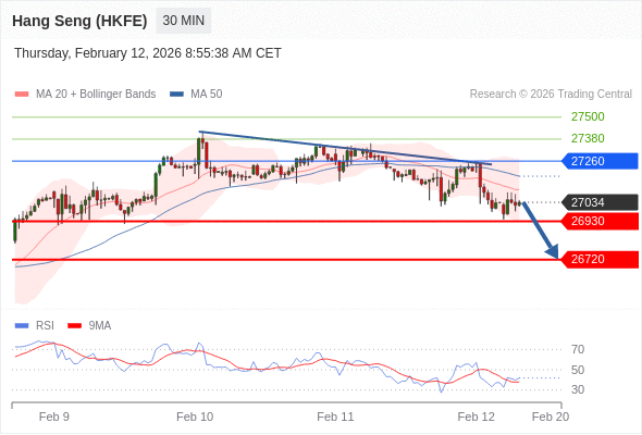 香港恒生指数期货 当日内: 目标位为26930。
