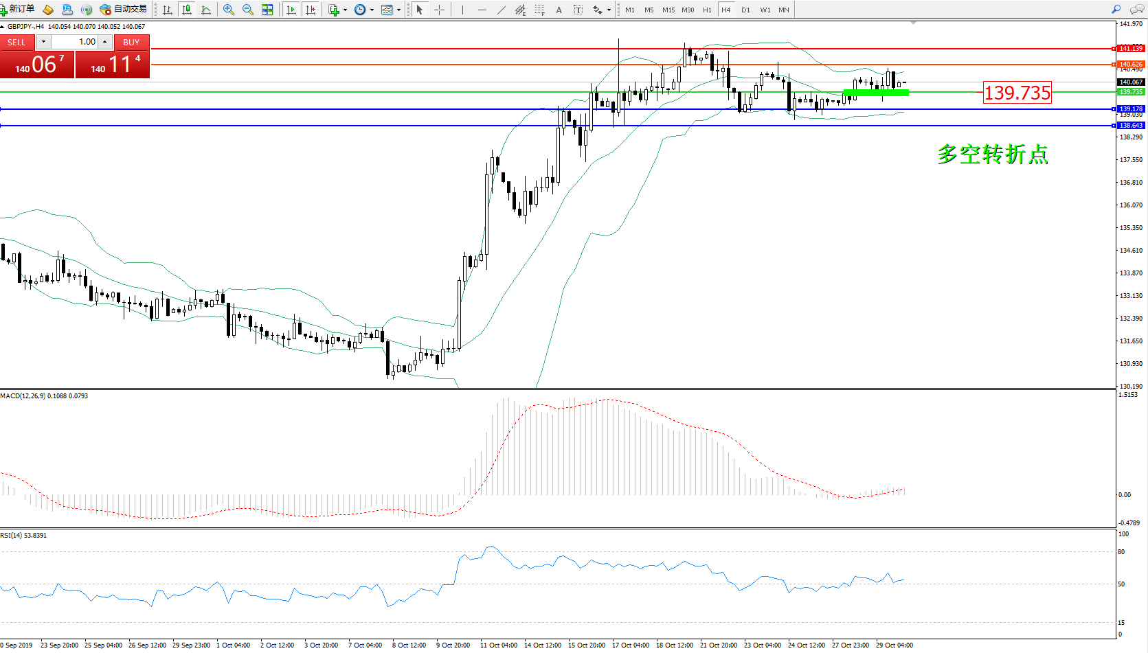 交易策略:139.735上方看涨,目标140.626141.139