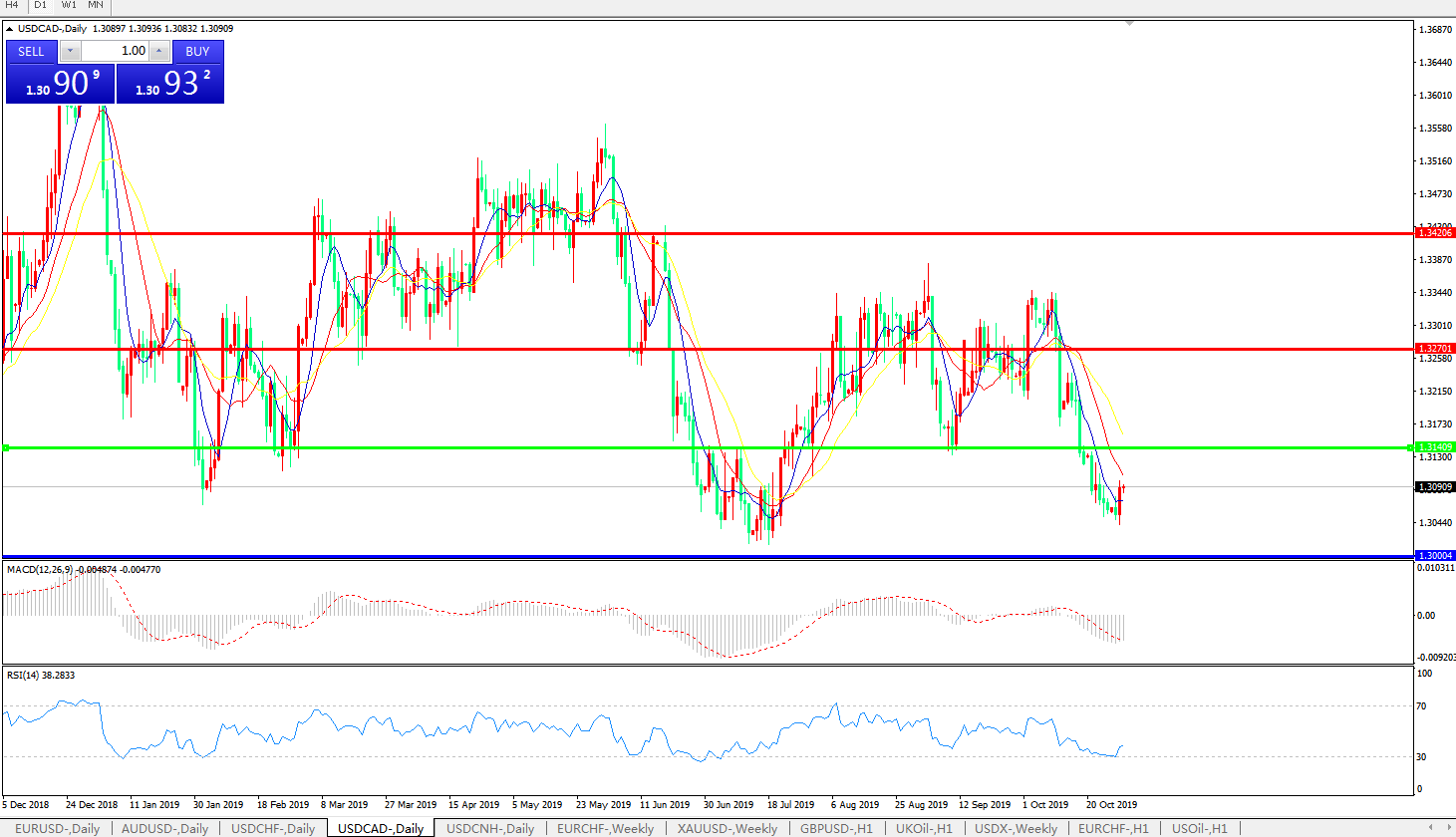 美元兑加元USDCAD    日线图: