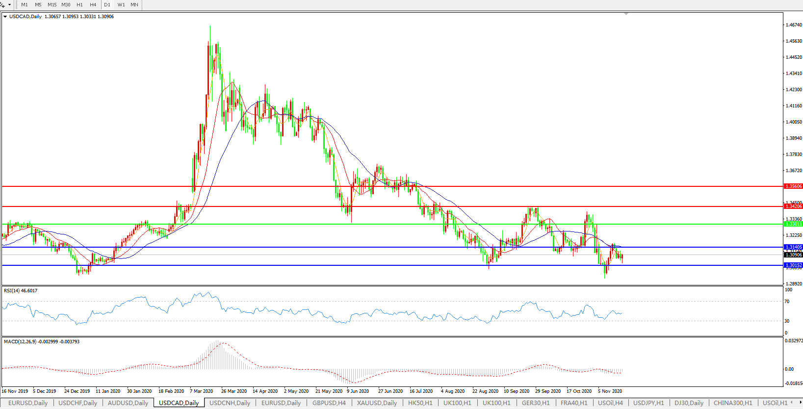美元兑加元USDCAD    日线图: