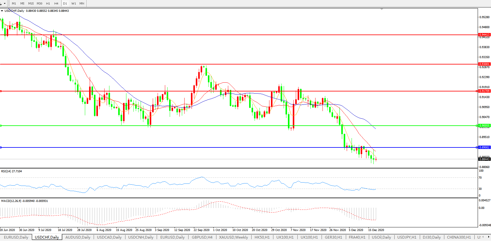 美元兑瑞郎USDCHF    日线图: